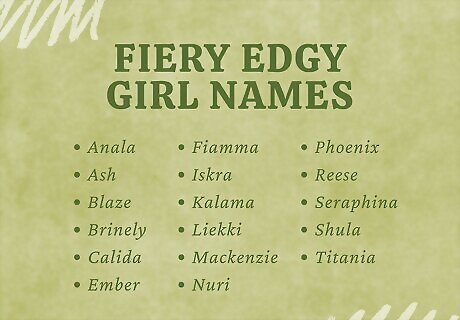Opt for one of these names for a daughter with a fiery personality. If you want to imbue your little girl with confidence, boldness, and a feisty energy, these fire-inspired names are amazing choices. Anala: “Fire” or “fiery,” Hindi origin. Ash: “Ash tree” or “powdery residue after a fire,” English origin. Blaze: “Fire,” Latin origin. Brenda: “Fire,” “torch,” or “sword,” Norse origin. Brinely: “Burnt meadow,” English origin. Calida: “Heated,” Spanish origin. Ember: “Glowing coal,” French and English origins. Fiamma: “Flame,” Italian origin. Iskra: “Spark,” Slavic origin. Kalama: “Flaming torch,” Hawaiian origin. Liekki: “Flame,” Finnish origin. Mackenzie: “Born of fire,” Scottish origin. Nuri: “My fire, my light,” Arabic and Hebrew origins. Phoenix: “Legendary bird” or “dark red,” Greek and Latin origin. Reese: “Fire” or “ardor,” Welsh origin. Seraphina: “Fiery,” Hebrew origin. Shula: “Flame,” Arabic origin. Titania: “To burn,” Greek origin.