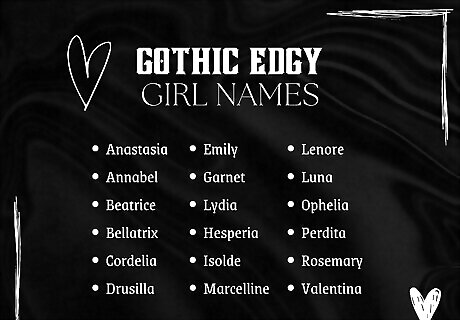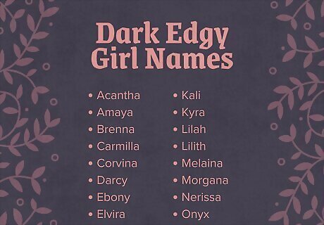 Choose one of these edgy names if you want a dark, mysterious vibe. These names are perfect if you and your partner are big fans of spooky season, or if you want a name with a dark and mysterious meaning. Acantha: “Thorny,” Greek origin. Amaris: “Child of the moon,” Hebrew origin. Amaya: “Night rain,” Basque origin. Adrienne: “Dark lady from the sea,” French origin. Brenna: “Raven” or “black-haired,” Irish origin. Carmilla: “Garden” or “orchard,” Hebrew origin. Ciara: “Black,” Irish origin. Corvina: “Like a raven,” Latin origin. Darcy: “Dark one,” French and Irish. Desdemona: A tragic Shakespearean heroine. Ebony: A deep, dark type of wood. Elvira: “Truth,” German origin. Kali: “Black,” Sanskrit origin. Kyra: “Dark-headed,” Irish and Scottish origins. Lilah: “Dark” or “night beauty,” Arabic origin. Lilith: “Belonging to the night,” Babylonian origin. Melaina: “Black” or “dark,” Greek origin. Melanie: “Black or dark,” Greek origin. Morgana: The villain in King Arthur’s story. Nerissa: “Black-haired,” Italian origin. Onyx: “Black gemstone,” English origin. Raven: “Large black bird,” British origin. Salem: “Secure,” Arabic origin. Samara: “Night talk,” Hebrew origin. Umbra: “Shadow,” Latin origin. Vesper: “The evening star,” Latin origin. Wednesday: In reference to Wednesday Addams.