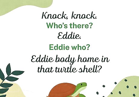 Some knock-knock jokes have a bad wrap for being corny and cliché, but we promise you’ll find a funny option you’ve never heard below. Here are the best turtle knock-knock jokes to have everyone rolling on the floor: Knock, knock! Who’s there? You. You who? You see a turtle go by? Knock, knock. Who’s there? Canoe. Canoe who? Canoe spell turtle? Knock, knock. Who’s there? Noah. Noah, who? Noah good joke about turtles? Knock, knock. Who’s there? Candice. Candice who? Candice turtle walk any faster? Knock, knock. Who’s there? Eddie. Eddie who? Eddie body home in that turtle shell? Knock, knock. Who’s there? Boo. Boo Who? Don’t cry! We have the best turtle jokes. Knock, Knock. Who’s there? June. June who? June know any good turtle knock knock jokes?