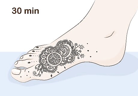 Allow the gel to dry for 30 minutes. Make sure you don't bump the design, as the stain will set anywhere that it touches. Use this time to relax, and try not to stretch or push the skin together.