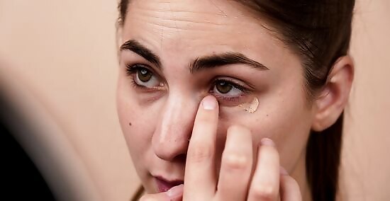 Put a concealer or foundation on your eyes. To create a good base for your makeup to stick to, and to cover veins and redness, rub or brush a pea-sized amount of primer, concealer, or foundation onto your eyelids, under the brow line, and below your eyes. This step is particularly important if you are going to be using a light shade of makeup, which won’t cover discoloration and veins.