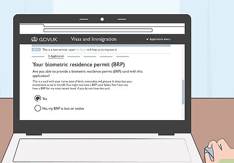 Fill out the BRP portion of the application if you don't have a BRP. Unless you're applying for a one-way travel document, you must have a BRP to re-enter the UK with travel documents. The BRP application is part of the travel document application and requires you to provide additional information about your identity. The online application will ask you if you have a BRP. If you do, simply answer "yes." If you answer "no," the BRP application will come up for you to fill out. You will have to provide a digital photo and digital fingerprints along with your signature for your BRP. You can get these done at any government service and support center or post office branch. As of January 2020, the fee is £19.20 for biometrics.Warning: If you already have a BRP but need to amend or replace it, you must do this before you apply for your travel document. You can't use the application included with the travel document application.