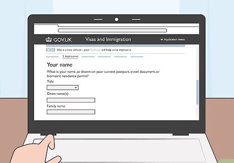 Visit the Visas and Immigration website to start your application. Go to https://visas-immigration.service.gov.uk/product/travel-document and click the green button at the bottom of the page with the words "Apply now." You will then be asked about your location. Click the circle next to "yes" if you are currently in the UK. After you provide your location, you'll be asked to select which type of travel document you want to apply for. If you're not sure, click on the question so see who qualifies for each type.Tip: If you don't feel comfortable using a computer or do not have internet access, you can get help over the phone by calling 03333 445 675. This phone line is open Monday through Friday from 9:00 a.m. to 5:00 p.m.