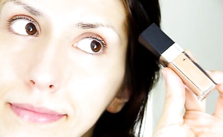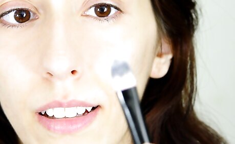 Apply the foundation. Do this by rubbing the brush on your skin in a circular motion. Start lightly on your cheeks and move off to the side of your face. The brush isn't supposed to just dust your skin with powder. It should buff the powder to help it adhere to the oil in your skin. The more you buff, the heavier the coverage will be. It might take practice to find the technique that works for you. The foundation will look a little powdery when you first apply it. However, it'll settle into your skin and look more natural in a few minutes.