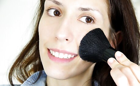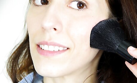 Apply a bronzer. Bronzer gives you the appearance of a light suntan. If this look is for you, apply the bronzer only to the areas of your face that get the most sun. Usually, this will be your cheeks, chin, and forehead. Use light, circular strokes with the Kabuki brush.