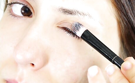 Put on some eye shadow. Touch your concealer brush to the eye shadow and tap off any excess into the makeup container. Gently apply the makeup to your eyelids starting at the outer edge and moving inward. Use light, downward strokes. Apply a layer of foundation or setting powder to your eyelids first, especially if you have oily skin. This will help to keep the eye shadow from dissolving over the course of the day.