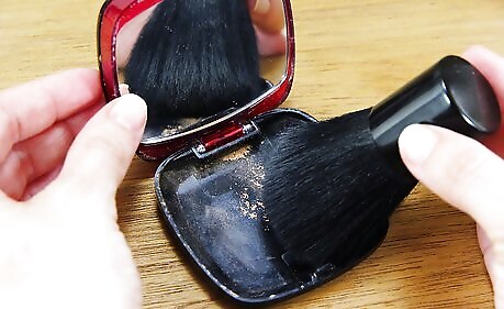 Get one to two pinches of powder onto the Kabuki brush. Swirl the brush in the cap. After that, tap the brush into the cap to remove the excess powder. The brush is most important in covering large areas of your face. An inferior brush might make the makeup look artificial.