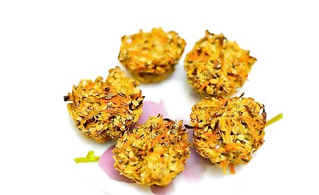 Bake the balls. Spray non-stick spray onto a cupcake or muffin tin and then pour the mixture into the divots. Preheat the oven to 400 degrees and then bake the muffins for 15 minutes. Remove them and check if they’ve browned. If they haven’t place then back in the oven for another 5 minutes and repeat until thoroughly baked.