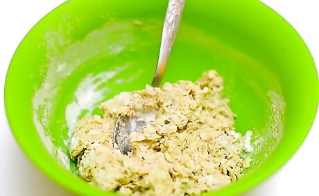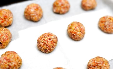 Bake the balls. Roll the mixture into balls and place them on a baking sheet. Preheat the oven to 350 degrees and then bake the balls for 12 to 15 minutes.