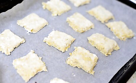 Bake the cookies. Lightly sprinkle flour over the cooking surface and roll the dough flat on the cooking surface so that it becomes a ¼ inch thick sheet. Use a cookie cutter or knife to remove cookie-shaped pieces and place them on a baking sheet. Bake them for 40 minutes at 350 degrees.