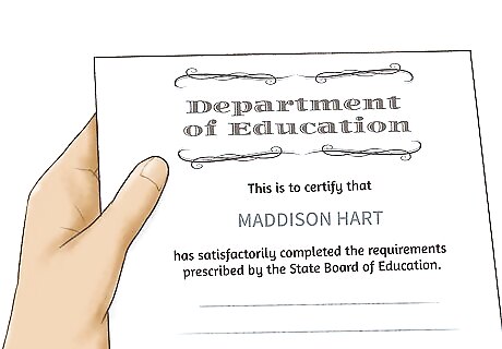 Apply for your teaching license. Each state has unique requirements for earning your license. Go to your state’s Department of Education website to find details on all of the state-specific requirements. Bear in mind that though you must have a license to teach in your state, earning teacher certification is optional, though it typically offers certain professional advantages including prestige and higher earning potential. Alternative licensure is also available in lieu of a teaching credential. If you have your bachelor’s degree but didn’t pursue a credential after college and/or if you’re changing careers, you may pursue an alternative license by finding placement in a classroom working under the supervision of a licensed teacher. While teaching, you’ll also take required coursework. You will typically need to teach and take coursework for one to two years before earning your license. Again, licensing requirements vary by state, so look into the specifics for your state.