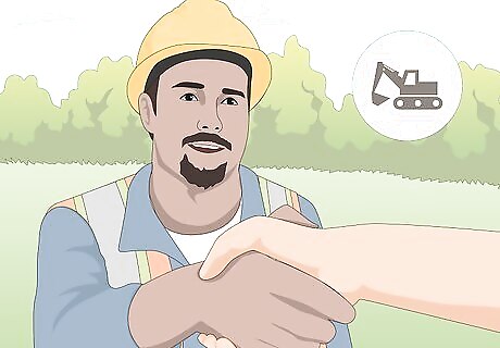 Enter a contract with an excavator. Moving enough dirt for a burial plot is a massive task, and likely not one you want to leave to your family members. If you hire an excavator to dig the grave, you can be certain that the dig is professional and meets your state's specifications. Keep in mind that although the excavator will dig the hole for the grave, they typically will not return to replace the dirt. Your family members may be responsible for refilling the hole with shovels and similar tools.