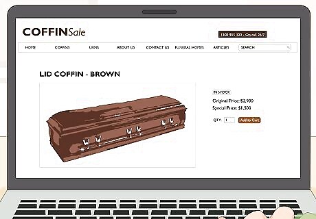 Choose the coffin you want for your burial. If you're having a home burial, you don't necessarily need the expensive caskets, liners, and other products that may be required for burial in a public cemetery (although you can certainly have them if you want). However, home burials typically use more simple products that are more environmentally friendly and allow for a more natural burial. You can order basic cardboard or wood coffins online if you want. While it may seem somewhat morbid to order your coffin in advance, it does allow you to pick out the one you want. If you're focused on an environmentally friendly burial, make sure you choose a coffin that is biodegradable.