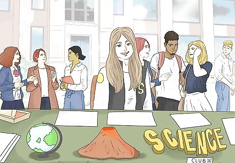 Join a club on campus. If football games or Greek life isn’t your thing, try looking into different clubs on campus. Like sororities and fraternities, they typically host events in the beginning of the year to recruit new members. Attend some of these and join your favorite ones. There are so many clubs in college, the hardest part will be picking one. You can also start a club as well.