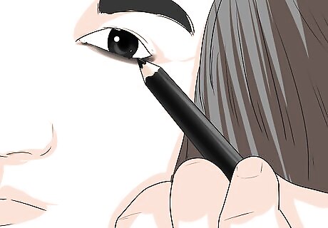 Load up on eyeliner and mascara. Another staple of the emo look is a heavy, dark eye makeup. You can achieve the look by applying a lot of black eyeliner -- use a pencil to line your upper and lower lashlines and then use a cotton swab to smudge it slightly. Finish off with a couple of coats of mascara to make your eyes look a little more dramatic. Make sure that you have your parents’ permission to use makeup before you start wearing eyeliner, mascara, or any other cosmetics. Even if your parents allow you to wear makeup, you should check your school’s dress code to make sure that you can wear eyeliner and mascara to class.