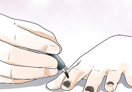 Polish your nails with dark shades. Just as with your clothing, you should avoid bright or light colors when it comes to your nail polish. Black is the obvious choice, but if that feels too extreme for you, you can go with navy blue or even a dark red. Emo guys should feel free to wear dark polish if they’re comfortable with it too. Complement your dark nail polish by keeping your nails short and square-shaped. Don’t worry if your nail polish gets a little chipped. That actually works with the emo look.
