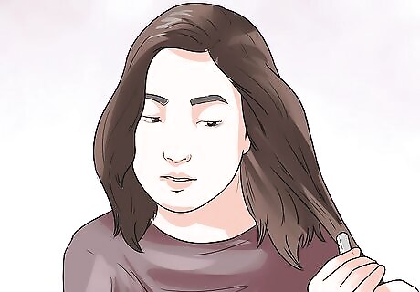 Use temporary hair dye. While the clothing, accessories, and makeup are usually dark, one place that bold color does often show up in the emo look is the hair. Streaks of bright pink, purple, blue, and green in your hair can give you the perfect emo look. Your parents probably won’t want you to permanently dye your hair, though, so ask them if you can use temporary dye to add a few streaks. Temporary dyes eventually wash out, but the length of time that it takes depends on the product. If your parents are uncomfortable with the idea of you temporarily dying your hair during the school year, you may want to ask if you can do it during your summer vacation or another extended break from classes. If you parent are still reluctant to allow you to use even temporary dye, you can purchase clip-in hair extensions in bright colors so you can put in some bold streaks for day and easily remove them.