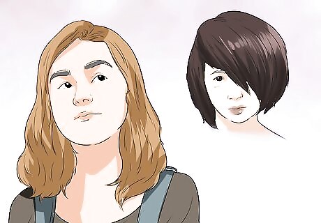 Get a haircut with bangs. While there isn’t any one specific emo hairstyle, strong bangs are a common feature. In most cases, they’re a long side-swept style that fall over one eye. Your bangs should have a shaggy look too, so they move easily when you’re dancing to your favorite emo band. In addition to bangs, most emo haircuts also features layers. To make sure you get the right style when you go to get your haircut, bring a couple of photos of emo hairstyles that you like to show your stylist. That way, you’ll know that they understand exactly what you want.