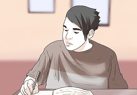 Take time for yourself. Emo teens tend to be introverted, which means they are drained by social interactions with other people. If you feel that way, it’s important to spend time by yourself so you can build your energy back up. Spending time alone also gives you more time to get in touch with your emotions and engage in creative pursuits, such as writing and drawing, that allow you to express your feelings. Don’t be afraid to tell your friends that you don’t feel like hanging out, or asking your parents if you can skip out on family TV night to spend time alone in your room. While some time for yourself is good for you, don’t assume that you should spend all of your time alone just because you’re emo and introverted. Spend time with friends and family who you’re comfortable sharing your feelings with when you feel up to it.