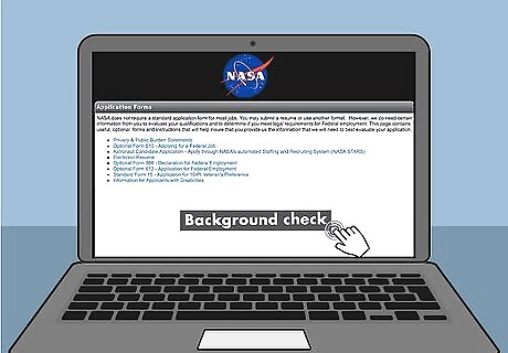 Undergo a background check when the space agency requests it. After you hear back from the space agency, follow any directions they give you about completing your application. If you are considered for the job, the agency will ask you to get a background check. Once you give permission for the check, the agency looks at your criminal history to make a hiring decision. Because many flight controllers work with the government, security is a big concern. Flight controllers receive security clearances from the agency. If you have a criminal record, your application may be disqualified.