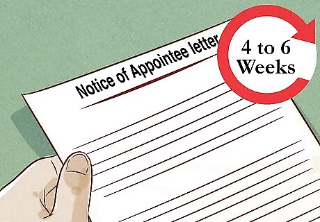 Wait to receive the Notice of Appointee letter from the state. It generally takes 4 to 6 weeks before you receive notice that you have been approved as a notary. The notice will be sent to whichever address you included in your application, so either your home address or your work address. It’ll also include an official bond and oath form that will have to be completed with 45 days of you receiving your letter. You can check your status online through the same place you submitted your application.