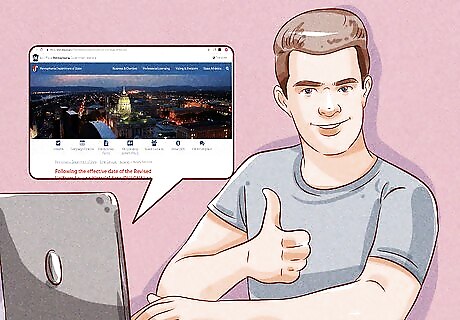 Take and pass the notary test and pay the exam fee within 6 months. After getting your email of approval, you have 6 months to register for and take the notary exam. The state will provide you with either a physical or digital copy of the official notary handbook, which can be read and studied to help you prepare for the test. There are also practice exams you can take online. Follow the instructions in your approval email to register for your test, and make sure to write down the address for the testing location you choose. There is a $65 exam fee that will need to be paid when you register to take your test. If you don’t take the test within 6 months, you will have to retake the 3-hour educational course and submit a new application. You’ll also have to pay the $42 filing fee again.