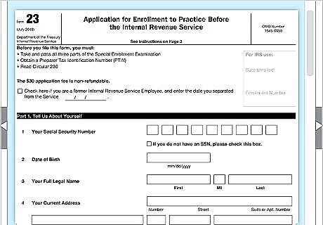 Complete Form 23 to apply for enrollment. You can download Form 23 at https://www.irs.gov/pub/irs-pdf/f23.pdf. The form requires you to provide personal and professional information about yourself. If you want to become an enrolled agent after your service with the IRS, you must apply within 3 years of your separation from the IRS. Otherwise, you'll have to take the SEE exam.