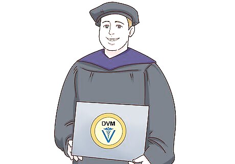 Complete veterinary school. Here, you will earn your Doctor of Veterinary Medicine degree (DVM). You’ll learn about things like diagnostic procedures, radiology and imaging technology, and preventative techniques. This degree typically takes 4 years to complete.