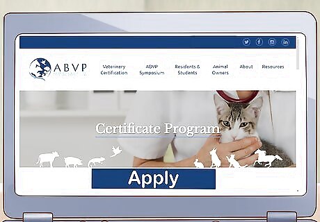 Apply to an accredited veterinary program. The American Veterinary Medical Association (AVMA) is the main body of accreditation for veterinary schools. It represents more than 89,000 professionals in the veterinary field, and while it’s not a requirement that every veterinary school be accredited, the vast majority of well-respected schools have opted for AVMA accreditation. Accredited schools are held to higher standards of education and obtaining a certification from an accredited program can make it easier to find a job. Depending on your veterinary school of choice, you may need to take the Veterinary College Admission Test (VCAT) exam before applying. This is a standardized test designed to indicate an applicant's level of readiness for graduate level coursework and your scores may determine your eligibility or likelihood of acceptance.