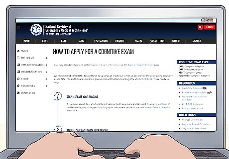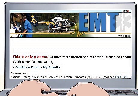Prepare for the NREMT exam. Like all exams, it's a good idea to study before you take your NREMT exam. The exam is difficult but with plenty of study, you should have no problem passing the test. You can take practice exams online at the following website: https://www.emt-national-training.com/demo/create_test.php. The test will cover subjects including trauma, cardiology, resuscitation, respiration and ventilation, neurology, obstetrics, gynecology, and EMS operations.