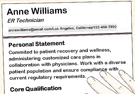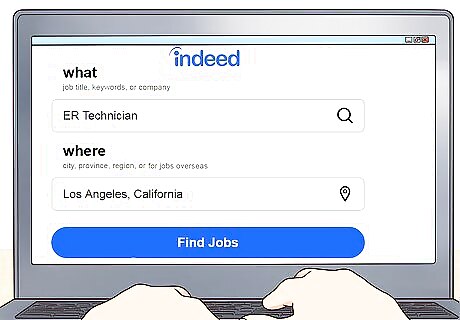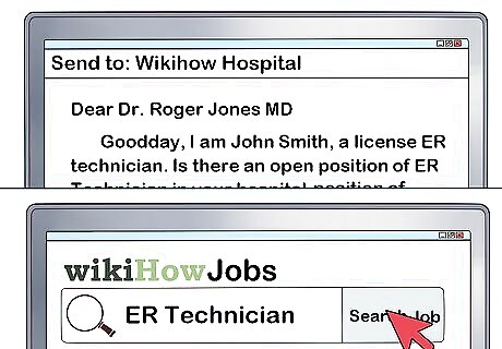 Look for jobs as an ER technician. Contact hospitals in your area by email or phone and ask about open positions for ER technicians. Search for job openings online or at job fairs.