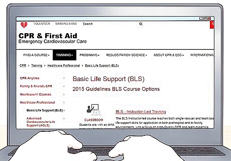 Get a Basic Life Support for Health Providers (BLS) Card. Most emergency medical technician courses require 1 of these cards or certificates for access to the course. The BLS course is offered by the American Heart Association. You can take the course in 1 day over the course of 4 and a half hours. You can find and apply for BLS courses at the following link: https://cpr.heart.org/AHAECC/CPRAndECC/Training/HealthcareProfessional/BasicLifeSupportBLS/UCM_473189_Basic-Life-Support-BLS.jsp. The BLS course will cost around $100. The course will teach you the AHA chain of survival, the differences between rescue techniques for adults, children, and infants, how to perform CPR, and how to relieve choking, among other things. When you finish the course, you will be presented with a BLS card. The card will be valid for 2 years.