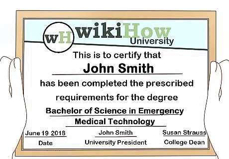 Complete a bachelor's degree if you want to boost your resumé. Colleges throughout the country, universities, and community colleges offer courses in health care and emergency medicine for potential ER technicians. A bachelor's degree will boost your resumé and increase your chances of employment, as well as increasing your knowledge about the field. Some colleges allow the bachelor's degree course to be taken online. Most colleges have entry requirements. Find out the college's entry requirements on their website or by contacting them via email or phone. The bachelor's degree is optional but will make you stand out far more to prospective employers.