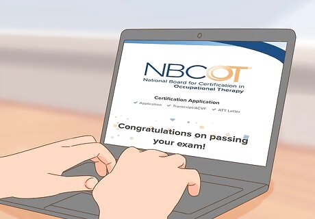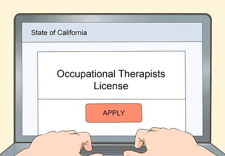 Apply for a license in your state and pay any necessary fees. Specific requirements and fees vary by state and may change from year to year, so you should look up the requirements from the occupational therapy licensure board for the state you plan to work in. Some states only require prospective occupational therapists to pay a fee and complete the NBCOT exam, as well as the prerequisites necessary to take the exam. For instance, in New York, you must have completed an accredited Occupational Therapist Program earning an entry-level master's degree or post-baccalaureate certificate, finished at least six months of supervised field work, and passed the NBCOT with a score of 450 or higher. Other states require prospective occupational therapists to pay a fee, complete the NBCOT exam, and pass a state-specific written exam or questionnaire. First-time license applicants in Texas, for example, take an online, open-book Jurisprudence Exam that covers rules and regulations specific to the state. A few states also grant leeway to applicants who were previously licensed in another state. Occupational therapists must still apply for a new state license before working in a different state, but some states permit previously licensed applicants to work under limited conditions while the application process progresses. In California, applicants can work in association with a California-licensed therapist up to 60 days after applying for a state license. In New York, applicants can work under the same conditions up to one year. Fees vary by state, but first-time applicants usually end up paying a couple hundred dollars. In Texas, the fee as of 2012 was $140, but in New York, the fee was $294.