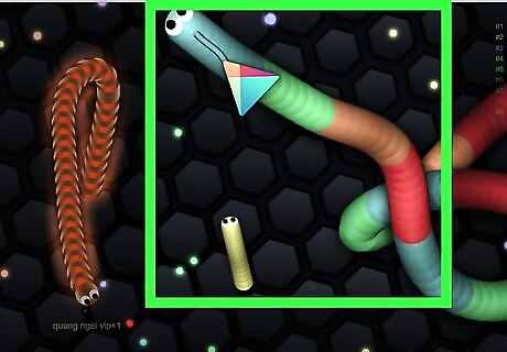 Collect the dots. Feed them to your snake to make it bigger. This is not only the safest way, but it is the most time-consuming method. So it is suggested that you only use this method if you want a longer game of Slither.io.