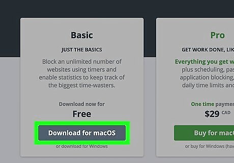Click Download for macOS. It's the grey button in the box labeled "Basic". This is the free version of Cold Turkey. The free version allows you to block websites on Safari, Chrome, and Firefox for a set period of time. The green button is the Pro version of Cold Turkey. It costs $25 and allows you to set daily time limits, block applications, and more.