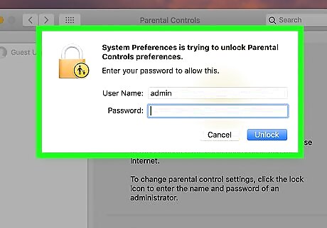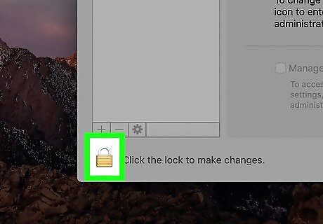 Click the lock icon. This is in the bottom-left corner of the screen.