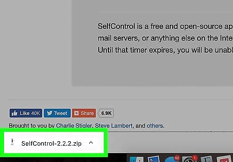 Open the SelfControl zip file. This is the file labeled "SelfControl-2.2.2.zip". You can find this file in your Downloads folder in The Finder, or at the bottom of Safari or Google Chrome when it is finished downloading. This extracts the "SelfControl.app" file from the zip file.