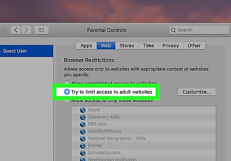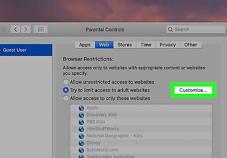 Click Customize. You'll find this option below the "Try to limit access to adult websites" text. Click it will take you to a menu.