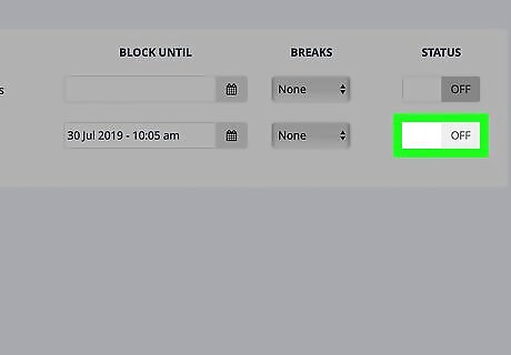 Set a block time. Click and drag the slider to the right to increase the amount of time for which the site is blocked. Dragging the slider to the left decreases the time.