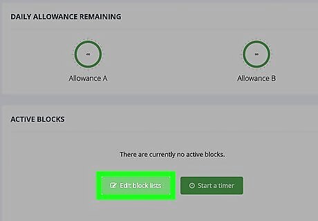 Click Edit block lists. It's the green button at the bottom of the "Dashboard" page. Alternative, you can click the "Block Lists" option in the menu to the left.