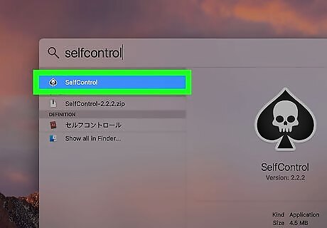 Type selfcontrol in the search bar. This displays a list of matching files and apps on your Mac.