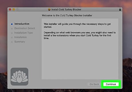 Follow the instructions to install Cold Turkey. Once you click on the install file, follow the on-screen instruction to install Cold Turkey: Click Continue in the lower-right corner fo the Installer window. Click Continue to install the app for all users on your computer. Click Install. Enter the password for your Mac username. Click Close once the installation is finished.