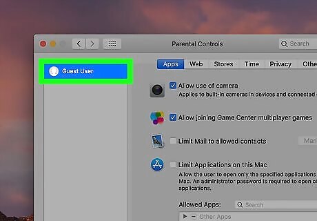 Select a user. Click a user's account name in the left-hand pane. This will select the account. You cannot select your own account. If no users are listed, select "Create a new user account with Parental Controls" and click Continue.