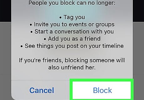 Tap Block to confirm. The person you block will automatically be unfriended and will not be able to contact you via Facebook or Messenger.