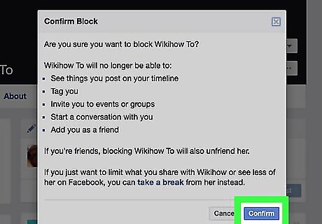 Click Confirm. The person you block will automatically be unfriended and will not be able to contact you via Facebook or Messenger.