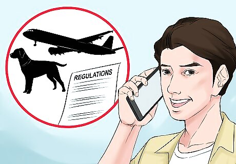 Call your airline to check regulations. Call your airline when you book your tickets instead of booking online. This way, you can ask any questions about restrictions regarding traveling with a dog. Different airlines have different regulations. Some airlines will not fly dogs during very hot months for insurance purposes. If you're flying during the summer or spring, you may have to try several different airlines before you find one that will take your dog. Make sure you know specific requirements regarding things like crate size and fees.