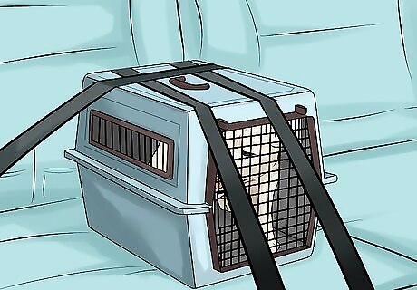 Transport your pet to the airport safely. If you have a long drive to the airport, make sure your dog is safe and comfortable throughout the trip. Keep your dog in a crate or restrain it with a seatbelt so it will not distract you when you drive. Make sure to make plenty of stops to let your dog out of the car to stretch its legs and use the bathroom. Never leave your dog alone in the car, even for short periods. This can be very dangerous.
