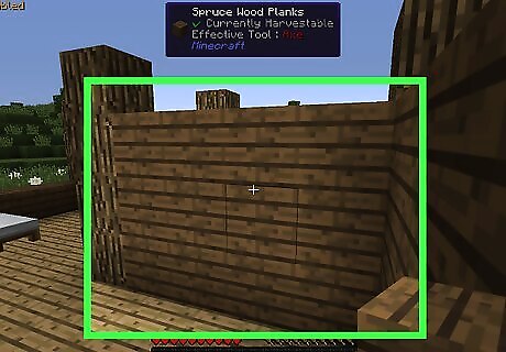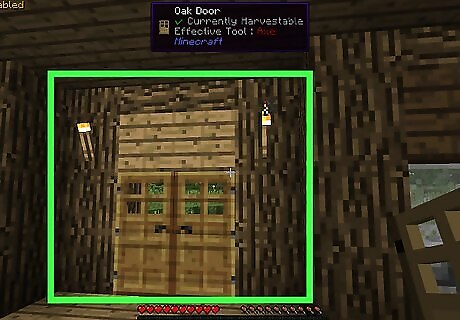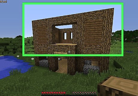 Create an entrance. Make a two-block-tall, one-block-wide hole in one of the walls. Do this in the location in which you want to create your door later.