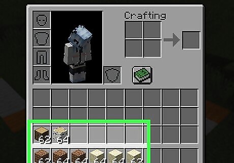 Collect your preferred building materials. Before you set out to create your structure, make sure that you have a few stacks each of your preferred flooring material, your preferred primary building material (e.g., what you'll use to create the walls), and any additional materials you want to use. A "stack" holds 64 items.